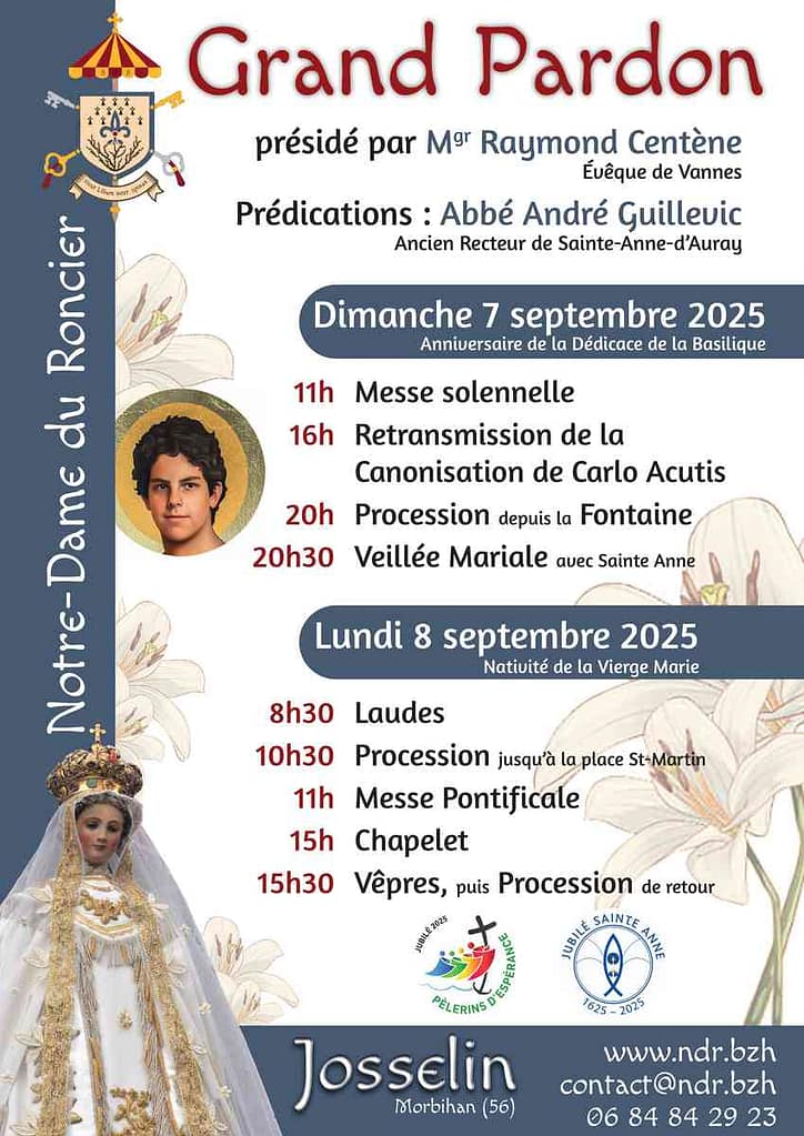 Notre groupe de grands-parents ne s’est pas réuni au cours de ces vacances, mais nous devrions nous retrouver au Pardon de Notre Dame du Roncier à Josselin le lundi 8 septembre (programme ci-dessous)