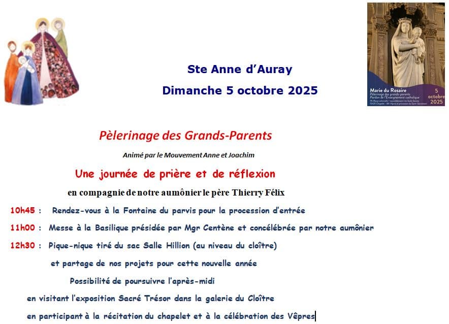 Au cours de cette journée nous ne manquerons pas de confier à Sainte Anne et à Notre Dame du Rosaire tous les membres de notre Mouvement qui ne pourront se joindre à nous.